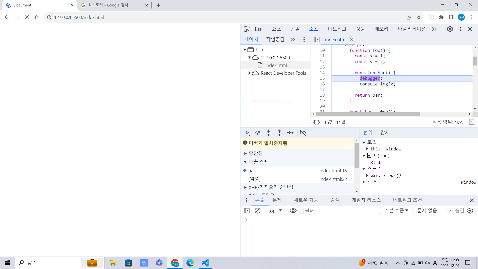 // bar()함수가 foo()함수안에 있다 스코프체인이 발생