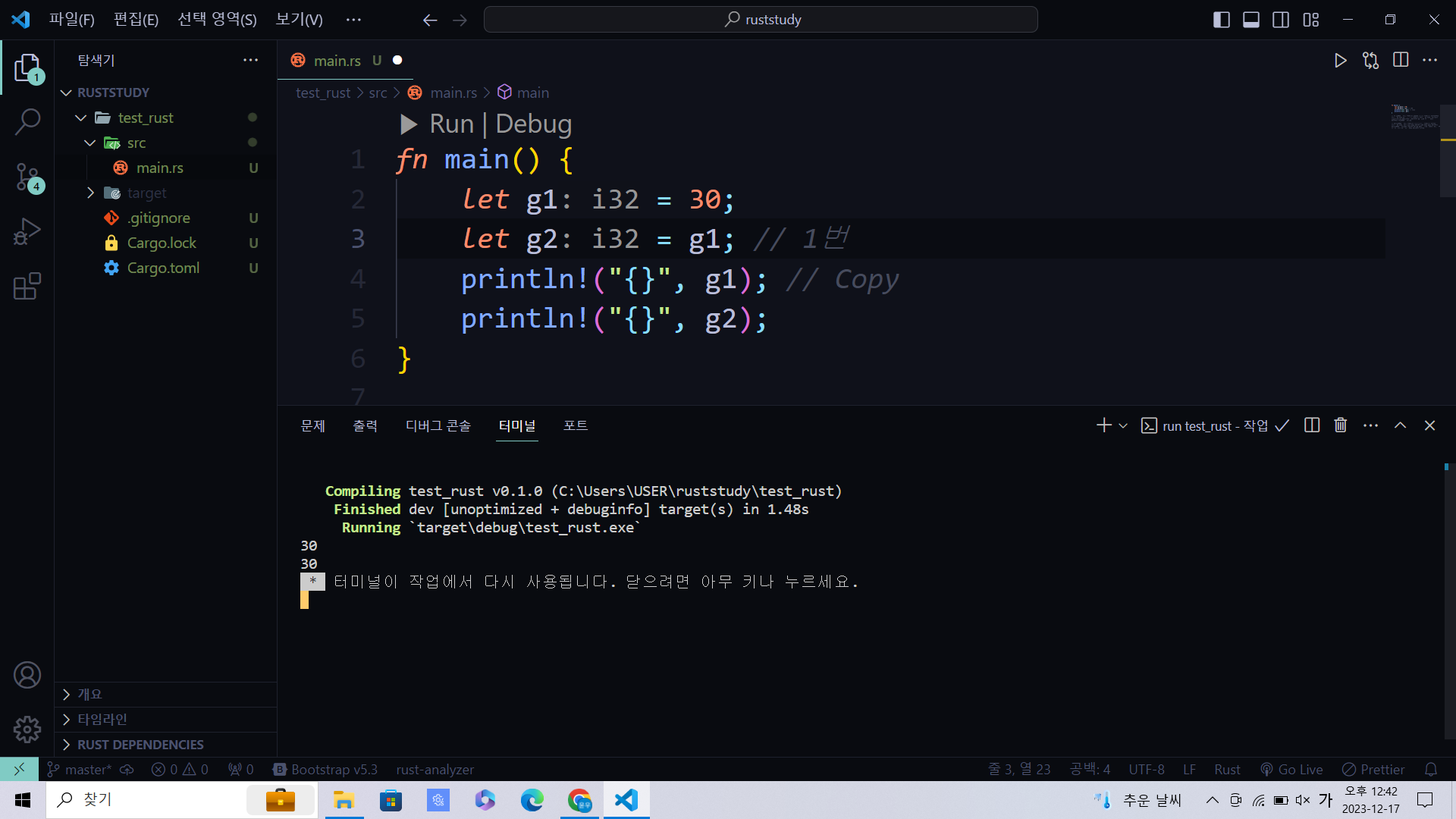 | 러스트 프로그래밍 - 참조 & 와 빌림(borrow) (0) | 2023.12.17 |