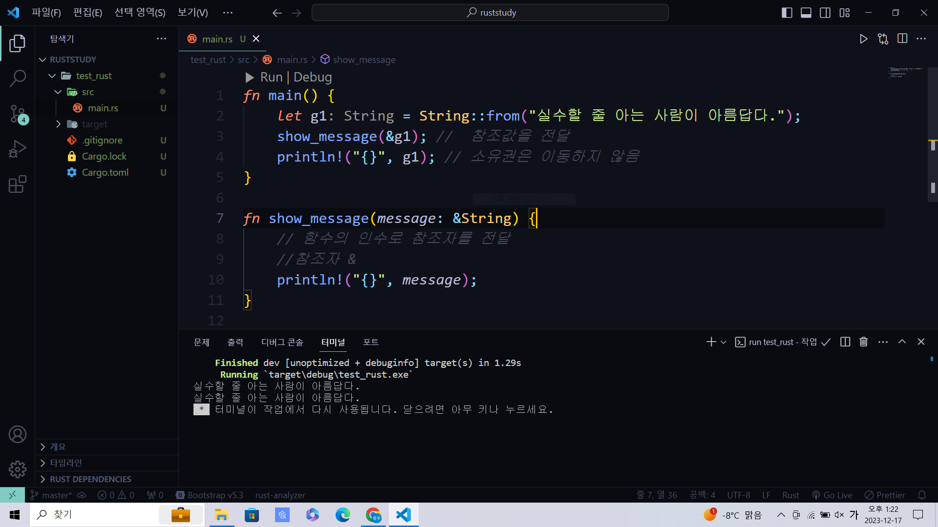 | 러스트 프로그래밍 - 스코프를 벗어나면 drop (0) | 2023.12.18 |