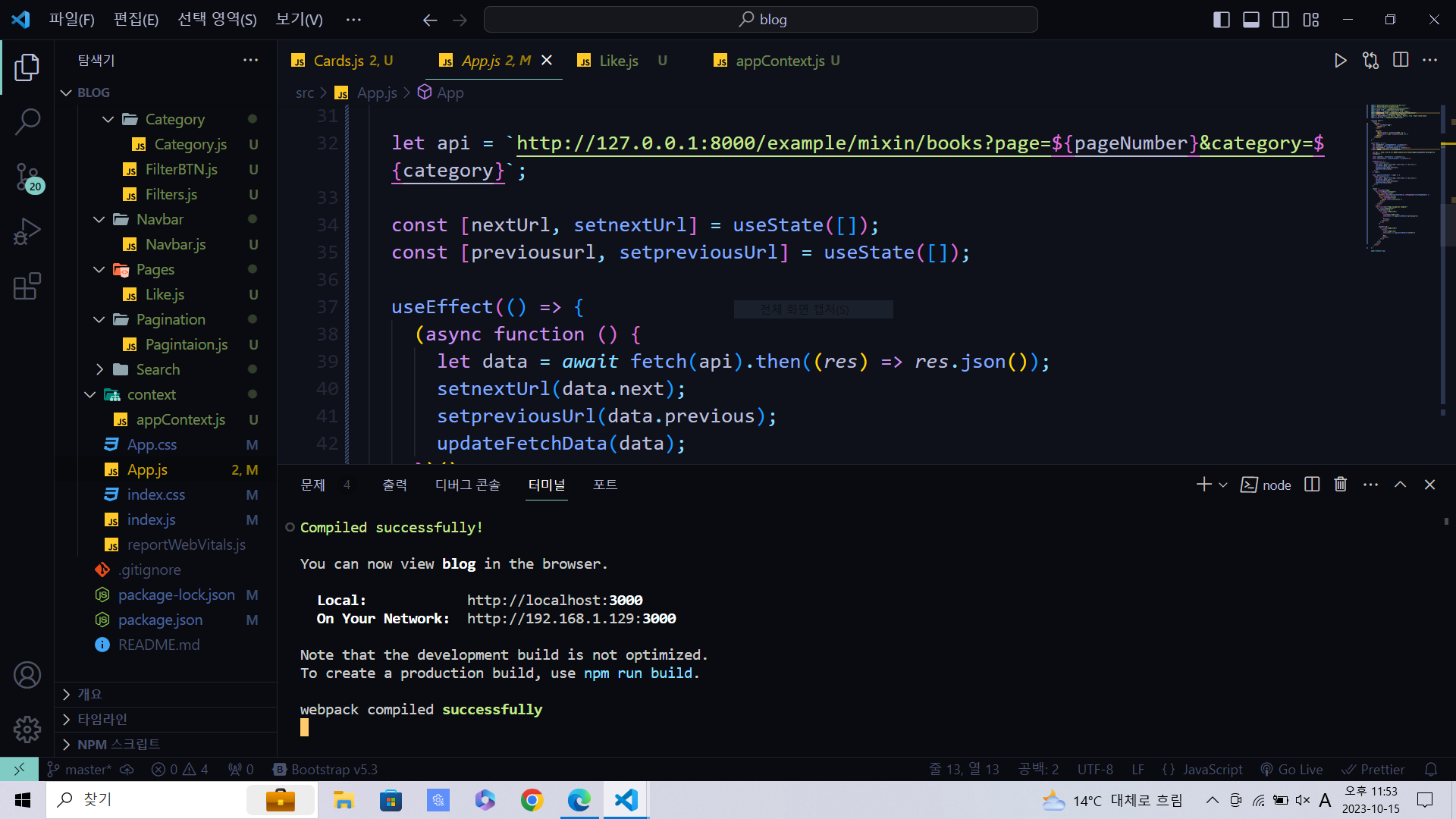리액트 try-catch, 리액트+장고(DRF) 작업물 완성