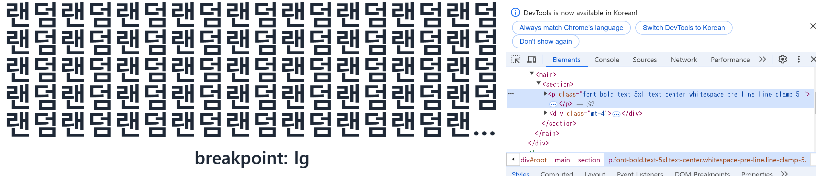 • 기본 클래스: 'font-bold text-5xl text-center whitespace-pre-line'